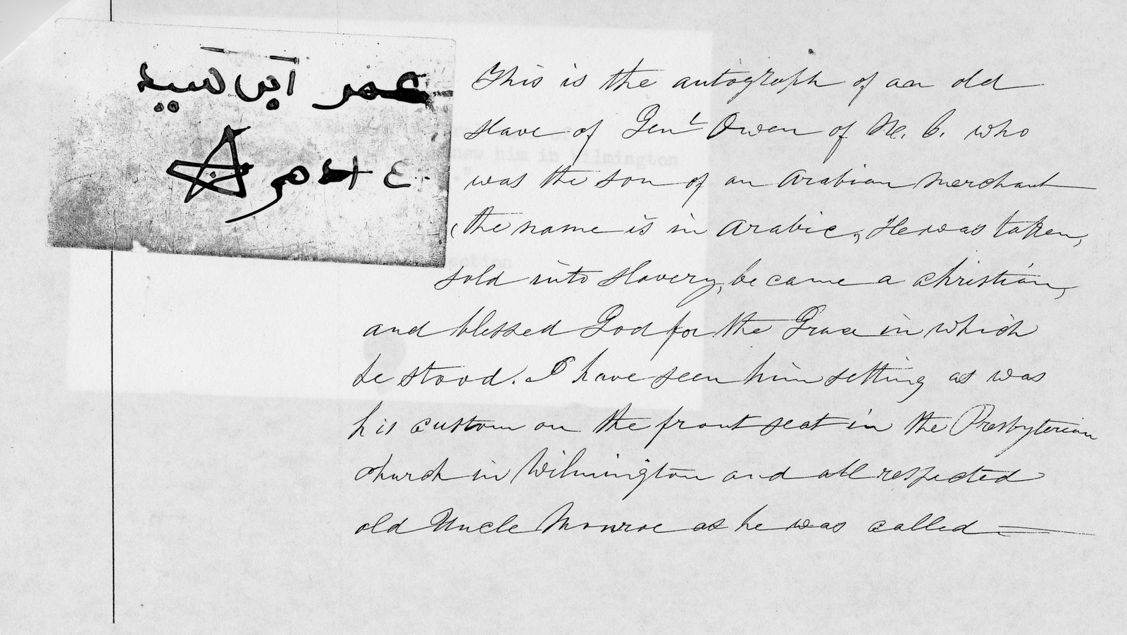 EAXTERNAL DESCRIPTION: “This is the autograph of an old slave of Gen. Owen of NC who was the son of an Arabian merchant (the name is in Arabic)."